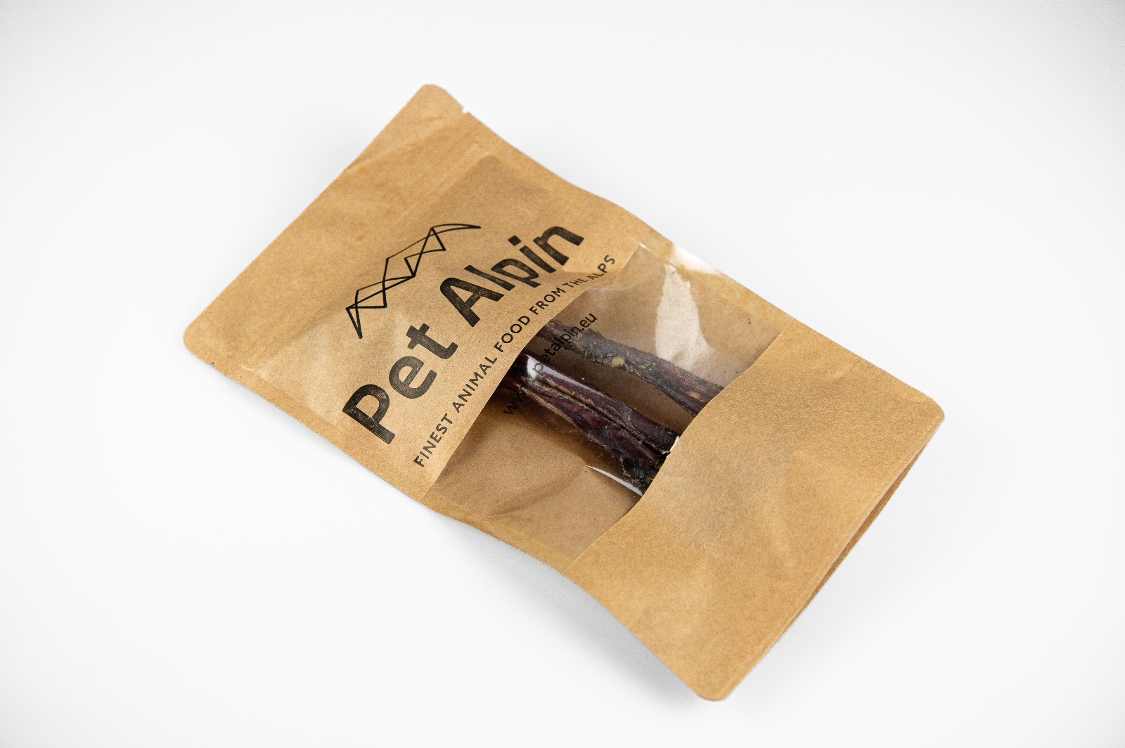 Nerbo di bue essiccato con rosmarino – uno snack molto resistente da masticare, ideale per un lungo intrattenimento e per sostenere in modo naturale l’igiene dentale.